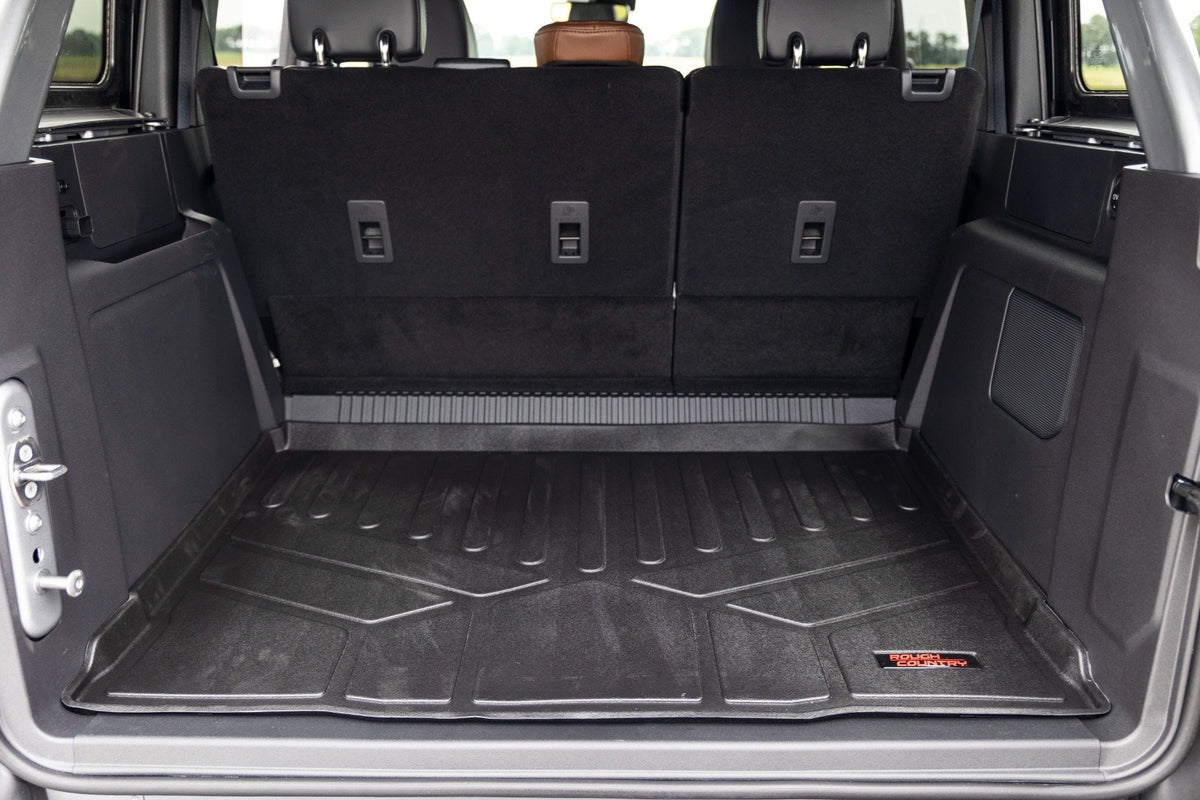 Keep your carpet in pristine condition with Rough Country's Floor Armor: Heavy Duty Floor Mats and Rear Cargo Liners. These eco-friendly, semi-flexible floor mats are made of an ultra-durable Polyethylene that offers a strong, rigid shape that's incredibly easy to clean.\ Where simple rubber floor mats fail, Rough Country's line of Floor Armor is guaranteed for life and will never crack, split, or break-down over time. The high-quality design extends the lifespan of your carpets and the raised-lip design ensures your interior will always be protected from mud, moisture, and more.\ These contoured floor mats are laser-measured for each make and model; designed to be a precise fit that grips the carpet and stays put. An aggressive looking textured surface gives your muddy shoes plenty of traction and looks great inside the vehicle.\ No matter what you track in, Rough Country Floor Armor is incredibly easy to clean. Just pop them out of the floorboards and rinse away the dirt! Includes Rough Country's Lifetime Replacement Warranty.
