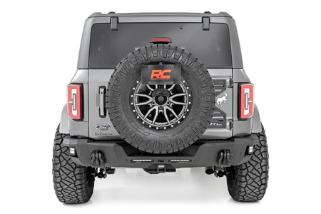 Relocate your license plate for better visibility with Rough Country?ÇÖs Ford Bronco License Plate Relocation Kit! The factory Bronco rear bumper is designed to hold your license plate on the driver?ÇÖs side of the vehicle. However, for anyone upgrading to an aftermarket bumper - or for those who prefer a more symmetrical look - this license plate relocation bracket kit gives you a new place to mount your plate directly on the spare!\ Each kit features an adjustable arm allowing you to dial in the perfect position closer or further from the spare. An included LED light mounts above the plate for proper visibility and illumination. The entire system mounts securely to your spare with two specially designed lug nut bolts. Each piece is laser cut for a precise fit and powder coated black for a long lifespan of good looks!