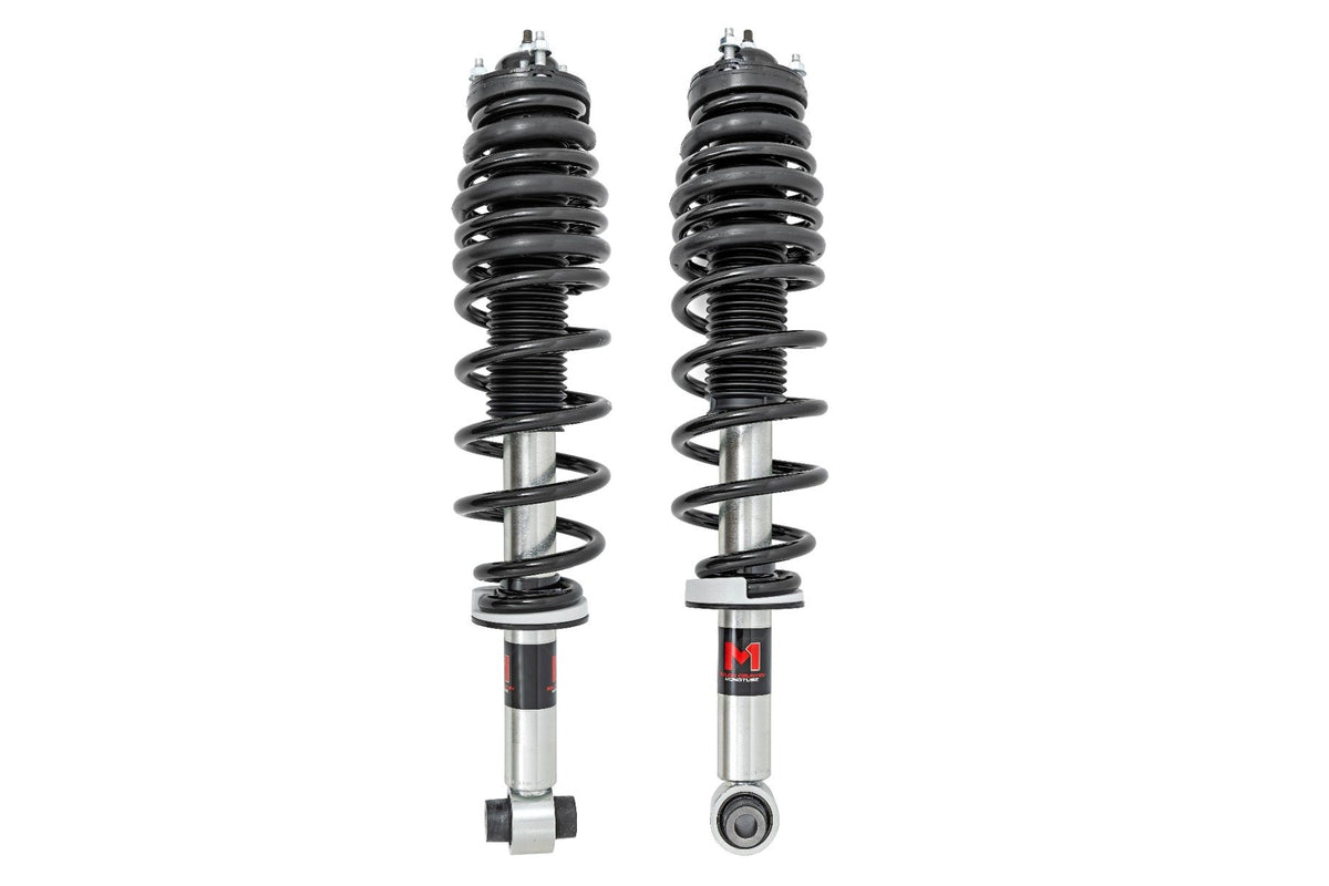 Improved Stance, Balance, and Handling.?ǻIf you want to improve your vehicle's on-road performance and off-road capabilities, Rough Country's M1 Loaded Strut Kits are the way to go. Our M1 Loaded Struts help stabilize your vehicle's movements, enhancing control when you turn, brake, accelerate or ride over uneven road surfaces. As an adjustable ride height strut, these M1?ÇÖs keep your suspension from overextending, providing a more consistent ride. Made for rugged off-road performance, our M1 monotube struts have a 46mm digressive piston for a more stable ride, preserving the smooth ride quality you need.\ Quality Construction.?ǻRough Country's M1 Loaded Struts have been engineered to give you the most reliable performance, increased driving comfort, and all-around performance for your vehicle. Made from 2" seamless extruded tubing and feature durable vulcanized natural rubber bushings. They're also zinc plated for resistance against the elements. Plus, they're adjustable in height. Utilizing multiple grooves in the strut body the spring perch can be raised or lowered. So whether you're looking to add a little extra clearance for off-roading or just want your ride to sit a little higher, our M1 Monotube Loaded Struts are the perfect solution.\ Installation and Warranty. This bolt-on installation requires just basic tools and about 2-3 hours to complete. Our Strut Kit is backed with a limited lifetime replacement warranty towards manufacturer defects. As such, the product is protected from structural and workmanship damage after the date of purchase. With our industry-leading warranty, give yourself peace of mind when using Rough Country's products!