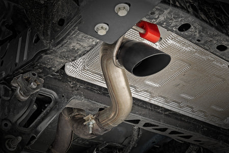 Let your engine roar! If you're looking to boost performance and add aggressive, thunderous sound to your Bronco, Rough Country's Muffler Delete Kit is what you've been waiting for. This straight-through design replaces the stock muffler providing maximum exhaust flow for the ultimate off-road experience.\ Stainless Steel. Rough Country's Muffler Delete Kit makes it easy to squeeze every last horse out of your Ford Bronco. Our kit features a 409 stainless exhaust pipe with 16-gauge tubing and tucks under your ride to give you maximum off-road clearance and approach angles. Featuring a 304 high-temp-resistant black tip with the RC logo, you'll have one of the best-looking and performing exhaust systems available.\ Installation and Warranty. Designed for the sixth generation Ford Bronco, this kit installs in the factory hangers and requires no welding. It features 304 stainless steel clamps, complete installation instructions, and our unmatched Limited Lifetime Warranty. So give your Bronco a distinctive look while letting everyone know you mean business with Rough Country's Muffler Delete!