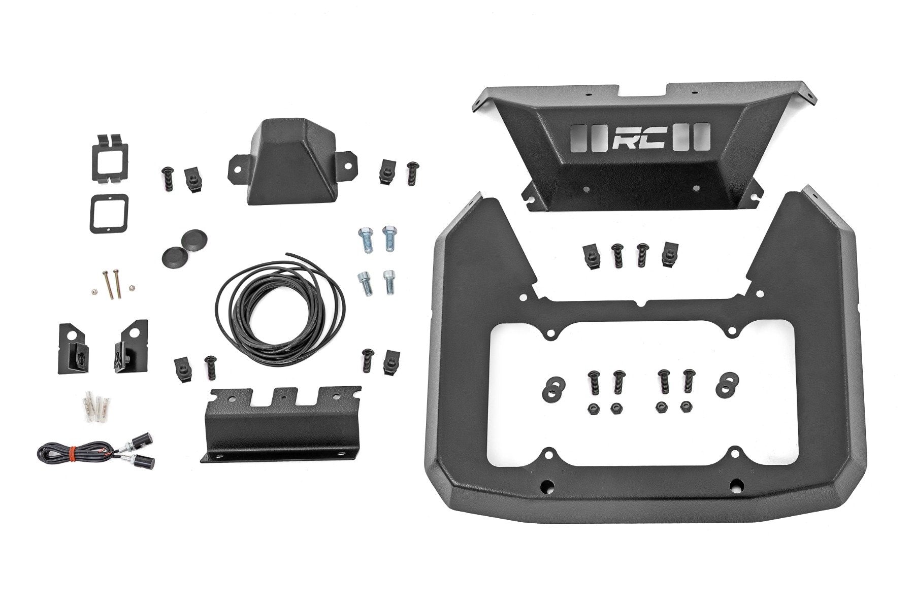 - Aggressive-looking design. Relocates license plate. Retains factory backup camera. Retains factory 3rd brake light. Includes license plate lighting. Durable powdercoat finish. Includes license plate mounting hardware.