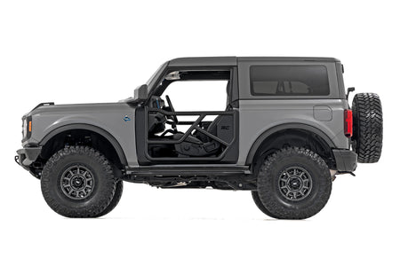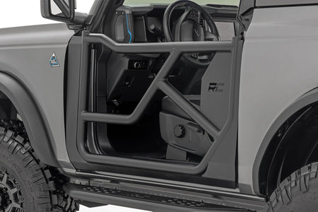 Put the wind in your hair and freedom at your fingertips with Rough Country?ÇÖs Steel Tube Doors! These durable, steel doors give your vehicle an aggressive look while giving you increased visibility without sacrificing safety.There?ÇÖs little in this world that can match the feeling of riding in a Bronco with nothing between you and the world around you! Rough Country?ÇÖs easy-to-install tubular steel doors allow you to keep your occupants safe while enjoying the open air. These durable, 1.25in diameter tube steel doors with integrated latching system keep everyone contained and comfortable for the duration of the journey.Rough Country?ÇÖs Tube Doors feature a high-quality, black powder coat that?ÇÖs designed to resist corrosion for a long lifespan of good looks. The simple bolt-on installation process makes them easy to install, allowing for a total transformation of your Bronco in no-time flat!