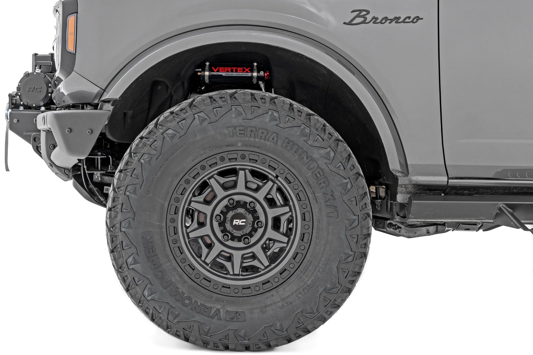 Behold: The pinnacle of off-road performance and smooth ride quality in an affordable package has arrived with Rough Country?ÇÖs 2.5 Vertex 8-Stage Adjustable Reservoir Shocks. These high-performance reservoir shocks offer an elite ride-quality in every situation you face, with an 8-stage adjustable damping system that lets you perfectly dial-in your ride for whatever lies ahead. Whether you want a smooth ride for city streets or the ultimate damping for off-road mayhem, a quick spin of the dial lets you adjust each shock to the exact performance specifications you desire.Rough Country?ÇÖs Nitrogen-charged Vertex Shocks feature a monotube design with an external reservoir for increased oil capacity and damping sensitivity. Each shock features a massive 2.5in diameter piston and a high-flow 22mm chrome hardened piston rod that simply dwarfs the competition. When it comes to investing in a high-end shock, you?ÇÖll be pleased to find that Rough Country?ÇÖs 2.5in piston design is beefier and offers an impressive 56% greater fluid capacity than the average reservoir shock.A 3-stage, fortified seal system ensures your Vertex shocks keep kicking while the beautifully designed honed steel body offers a long lifespan of reliable performance and killer good looks. This shock is designed to be a true eye-catcher, with a beautiful silver finish, laser-etched RC logo, matching "Vertex" decals, and CNC-machined Billet Aluminum accents. Rear shocks feature a durable bracket system with laser-etched logo and a premium braided steel reservoir line.Includes an Industry-leading 3-year Warranty!