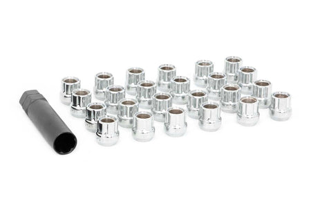 Secure your new wheels with Rough Country?ÇÖs Bulge Acorn Style Lug Nuts. These cold-forged lug nuts are plated with a beautiful chrome finish for a long lifespan of corrosion resistance and good looks. Acorn bulge nuts provide over 6% more seating surface area than a standard acorn lug nut. These premium lug nuts are the perfect choice for securing aftermarket wheels, and far exceed OEM strength and hardness. Each lug nut set includes a socket key for easy installation or removal. Choose between black or chrome finish for the perfect compliment to your build!