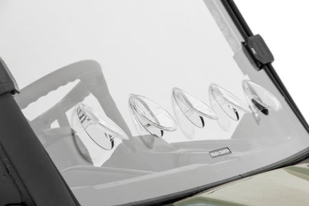 Added Protection and comfortability. Protect the occupants of your Can-Am Defender from off-road hazards such as rocks, branches, and other debris with Rough Country's Scratch-Resistant Windshields. UTV Windshields offer a clear visual of the trail ahead and allow for a much more comfortable outing!\ High-Quality Polycarbonate Construction. Rough Country UTV windshields are constructed from thick polycarbonate material that is precision cut for a perfect fit. The polycarbonate material provides an ideal combination of clarity, flexibility, durability that outperforms glass, acrylic, and other windshield materials.\ Durable Scratch and UV Resistance. Each windshield is not only constructed from thick polycarbonate material but enhanced by a secondary AR2 hard-coating process. This process completely coats the windshield with a hardened, scratch-resistant barrier. This treatment also provides the additional benefit of UV protection.\ Easy Installation. With a simple strap-on installation process, installing a Rough Country windshield couldn't be easier. Within 15 ?Çô 30 mins you can be ready to hit the trails.\ Limited-Lifetime Replacement Warranty. Rough Country's Scratch-Resistant Windshields are backed with a limited lifetime replacement warranty towards manufacturer defects. As such, the product is protected from structural and workmanship damage after the date of purchase. With our industry-leading warranty give yourself peace of mind when using Rough Country's Suspension products!