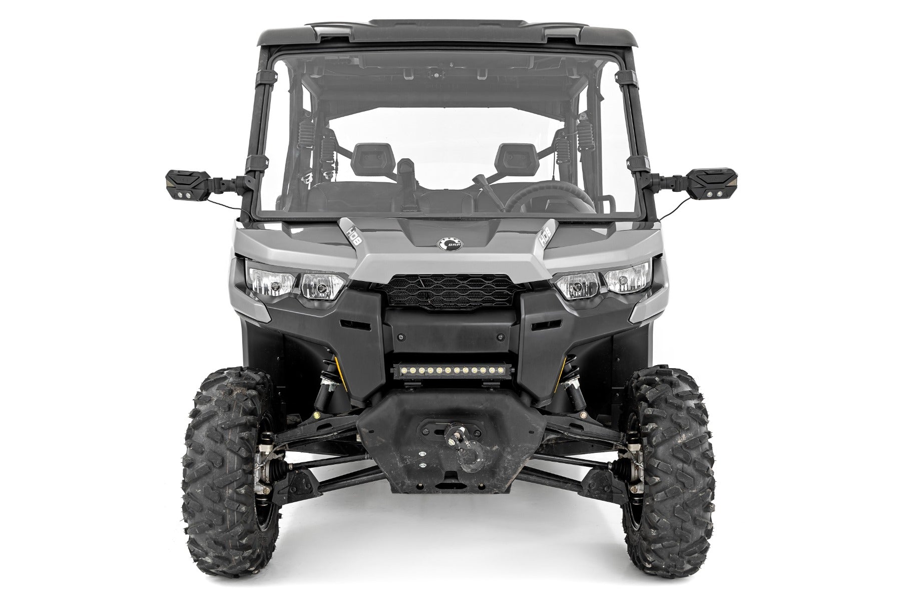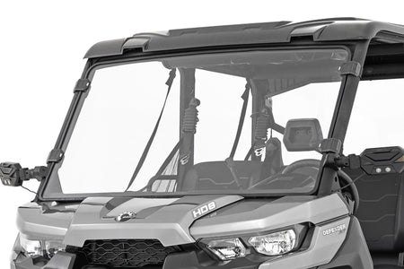 Added Protection and comfortability. Protect the occupants of your Can-Am Defender from off-road hazards such as rocks, branches, and other debris with Rough Country's Scratch-Resistant Windshields. UTV Windshields offer a clear visual of the trail ahead and allow for a much more comfortable outing!\ High-Quality Polycarbonate Construction. Rough Country UTV windshields are constructed from thick polycarbonate material that is precision cut for a perfect fit. ?áThe polycarbonate material provides an ideal combination of clarity, flexibility, durability that outperforms glass, acrylic, and other windshield materials.?á\ Durable Scratch and UV Resistance. Each windshield is not only constructed from thick polycarbonate material but enhanced by a secondary AR2 hard-coating process.?á This process completely coats the windshield with a hardened, scratch-resistant barrier.?á This treatment also provides the additional benefit of UV protection.\ Easy Installation.?áWith a simple strap-on installation process, installing a Rough Country windshield couldn't be easier.?á Within 15 ?Çô 30 mins you can be ready to hit the trails. ?á\ Limited-Lifetime Replacement Warranty. Rough Country's Scratch-Resistant Windshields are backed with a limited lifetime replacement warranty towards manufacturer defects. As such, the product is protected from structural and workmanship damage after the date of purchase. With our industry-leading warranty give yourself peace of mind when using Rough Country's Suspension products!