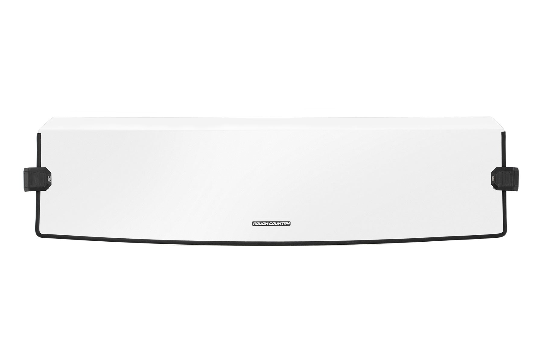 - Width: 50.863" Height: 12.939" Durable, polycarbonate construction. Inner and outer hard coating to resist scratching. Contoured design. Rubber seal for a precise fit. Works with factory or aftermarket roofs. Easy to install.