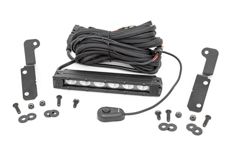 \ COMMAND THE DARK with Rough Country?ÇÖs Can-Am Maverick X3 Front Slim Light. This handy solution includes everything you need to upgrade your Maverick X3 with Rough Country 6-inch LED light bar mounted into the cowl for outstanding illumination.\ Whether you?ÇÖre off the beaten path at sunset or gathering all your gear before dawn, you?ÇÖll be glad to have access to this additional lighting power to tackle the task at hand. With up to 2,880 lumens and 36 watts of high-intensity CREE LED output in a 90-degree flood beam, you?ÇÖre sure to have plenty of LED power.\ These all-weather lights feature a durable, IP67 Waterproof, die-cast aluminum housing and include a premium wiring harness with toggle switch and in-line fuse. Best of all, this easy-to-install kit features a 100% bolt-on installation procedure allowing you to upgrade your side by side quickly and easily! Don?ÇÖt miss this opportunity to upgrade your ATV with one of the best Can-Am Maverick X3 LED accessories available!\