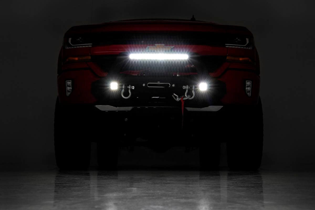 - Sleek, aggressive appearance 100% bolt-on installation Can be easily returned to stock Includes winch guard Includes (2) Rough Country 2in Black Series LED Cubes Includes (1) Rough Country 20in Black Series Single-Row LED Light Bar Includes (2) heavy-duty D-rings Fits Rough Country Winches and other standard-sized brands
