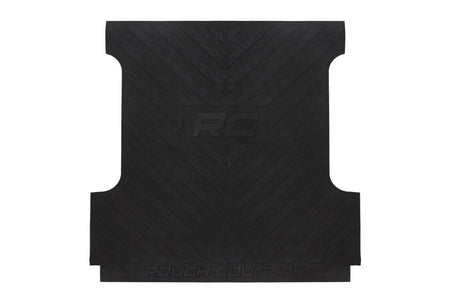 Innovative Design and Material. Keep your truck bed free from scuffs, scrapes, and scratches with Rough Country Truck Bed Mats. These heavy-duty, 3/8-inch thick, contoured rubber mats are nearly indestructible; made from a high-quality rubber compound that won?ÇÖt crack in extreme temperatures or fade when exposed to the sun. This stylized bed mat features a large "RC" and "Rough Country" logo with angled lines for an improved look that also protects your truck bed.\ Installation. With a simple drop-in design, installation couldn't be easier. With an estimated timeframe of 10 minutes, this mat can be installed at home efficiently and quickly! Simply place the bed mat in, and roll it out and you're done!\ Limited Lifetime Replacement Warranty. Rough Country's bed mats are backed with a limited lifetime replacement warranty towards manufacturer defects. As such, the product is protected from structural and workmanship damage after the date of purchase. With our industry-leading warranty give yourself peace of mind when using Rough Country products!?á