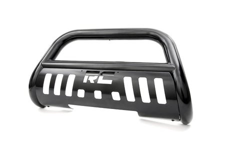 It's the ultimate combination of form and function with Rough Country's durable, new Bull Bars. Protect the front end of your truck with our beefy yet stylish Bull Bar kit. Featuring a 3-inch diameter tube design and corrosion-resistant finish, this Bull Bar package offers superior protection from hazards of the road and trail.Choose black or stainless and compliment the look of your vehicle with this eye-catching add-on. Features pre-drilled holes to easily add additional lighting. Rough Country's Bull Bars are easy to install, with a 100% bolt-on installation process that's easy enough to be done in a home garage with common tools. Each set of Rough Country Bull Bars is backed by Rough Country's 5-Year Warranty.