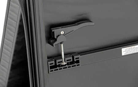 - High-quality marine grade vinyl bed cover in a stylish matte black finish. Tri-Fold Design allows quick access to cargo. Corrosion resistant black powder coated aluminum frame. Cantilever latches quickly secure and lock the cover in the closed position. All weather seal protects cargo from the elements. Nylon straps secure the cover in the 2/3 open position. Drive with the cover in the 2/3 open or closed position. No drill easy install and removal. Completely assembled in the box - no loose parts. No tools required - patented quick clamp system. 5 Year Warranty.