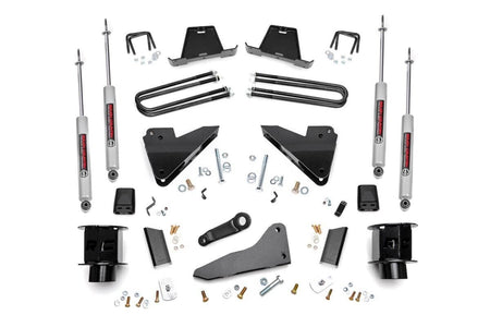 Compliment your RAM 3500's aggressive, good looks with Rough Country's 5-inch Radius Arm Drop Kit. New model RAM Trucks come with a wealth of impressive features right from the factory. Rough Country's new 5-inch kit was engineered to retain these impressive factory specs while bumping up performance and durability where it's needed most. The result is an aggressive, lifted beast with an mean profile and lush ride-quality that'll make other RAM owners wonder where you got yours from! When changing a vehicle's suspension, the key to preserving ride quality is in keeping the geometry of all suspension components as close to their factory angles as possible. Rough Country's 5-inch Suspension kit features a set of Radius Arm Drop brackets allowing you to retain the beefy factory arms while keeping everything at optimum angles. In a further effort to preserve the truck's factory ride, this kit retains the factory progressive rate coil spring -- designed by Dodge specifically for the weight and ride quality of these new model trucks. This kit also features a set of anti-wrap rear blocks and N3 Shocks for a fantastic blend of smooth highway ride and awesome off-road performance.