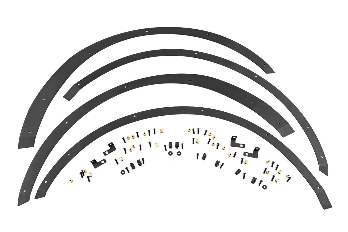 - Maximum travel and clearance. Gives a more finished and complete look vs simply removing fenders. Made from durable 1/8-inch plate steel. Laser-cut for a precise fit. Design allows for quick install and removal without having to pull back inner fender. Design allows for use of stock flare when removed. Designed to follow body contour. Durable black powder coat finish.