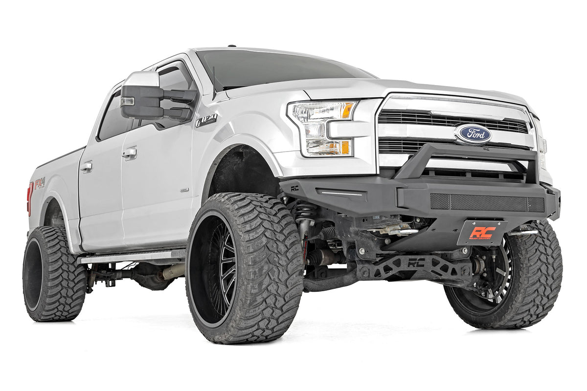 - Easy to install! Slim, Sleek design that follows factory features. Durable, steel construction. Integrated?áSkid?áPlate. Includes (2) LED strips. Includes 30in Dual Row Rough Country LED Light Bar. Includes mesh screen covers. Retains factory tow hooks. Retains factory proximity sensors.