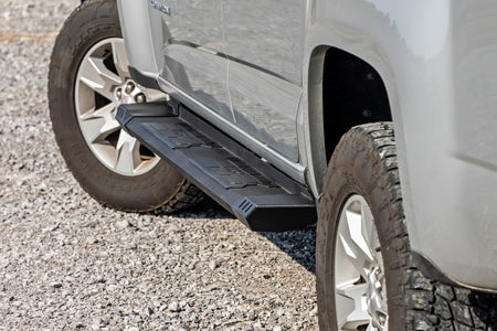Level up your truck's functionality and style with the Rough Country HD2 Running Boards. Crafted with precision and designed for those who demand the best, our HD2 running board is engineered to be your step for a lifetime of adventures.\ Corrosion-Resistant Aluminum: Imagine stepping into your truck on a platform built for battle. That's the HD2 experience. The HD2 combines the strength of 100% aluminum with a black powder coat finish, ensuring it?ÇÖs lightweight, corrosion-resistant, and rust-free.\ Rock-Solid Protection: We know the road can be tough! That's why our HD2 running board has durable composite endcaps. No more worrying about flying rocks and debris, these endcaps are made to handle the rough stuff and still look good.\ Spacious Stepping: Got big boots? No sweat! The HD2 boasts a generous 5?ǥ wide footing area. Now you can get in and out with ease, no matter how muddy or dusty your adventures get. And with a non-slip surface, you?ÇÖll stay steady on your feet, rain or shine.\ Style Meets Function: We know looks matter. That?ÇÖs why our running board isn't just durable ?Çô it?ÇÖs made with a sleek, stylish design that blends flawlessly with your truck, providing a smooth cover for any exposed frame.\ Easy Installation: No need to spend hours in the garage. Our running board is designed for easy, drill-free installation so that you can hit the road in no time. Plus, it's compatible with most truck models, making it a hassle-free upgrade.\ With hassle-free installation and design that's as rugged as it is stylish, your truck will turn heads and tackle trails like never before.