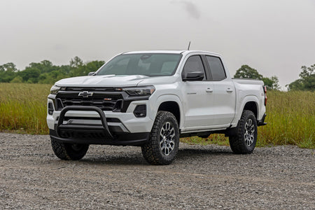 Explore New Heights. Give your Chevy Colorado increased ride height and aggressive good looks with Rough Country?ÇÖs 1-inch Lift Kit. This easy-to-install kit levels your vehicle from front to rear, giving you increased ground clearance to run larger tires while eliminating the nose-down factory look for a commanding presence.\ Innovative Design and Construction. When it comes to lifting your Colorado, a small lift can make a huge difference! By lifting the vehicle's front end to match the height of the rear, you get an instant transformation that won't sacrifice the factory ride quality. Each kit features upper strut spacers, molded for a precise fit.\ Installation and Warranty. This easy-to-install kit features a 100% bolt-on installation process, making it easy to improve the look of your vehicle even with common tools in a home garage! Rough Country's 1" Suspension Lift Kit is backed with a lifetime replacement warranty towards manufacturer defects. As such, the product is protected from structural and workmanship damage after the date of purchase. With our industry-leading warranty give yourself peace of mind when using Rough Country's Suspension products!