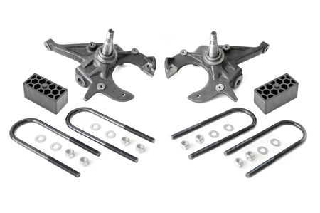 If you want to easily transform the look of your truck, look no further than Rough Country's 2in / 2.5in Lowering Kit for 82-04 Chevy S-10 pickups. Our easy-to-install Lowering Kit is a total transformation, offering a sleek, modern look that keeps heads turning! A set of sturdy Driver and Passenger Lowering Spindles offer plenty of strength and durability while helping maintain a factory-like ride. Also included are a set of Fabricated rear blocks, offering superior strength and reliability over cast blocks. All together, this kit drops the ride height of your S-10, S-15, Blazer or Jimmy by 2in in the front and 2.5in in the rear, offering a sleek, level drop while keeping other crucial components in line. Best of all, This easy-to-install lowering kit features a simple, 100% bolt-on installation process.