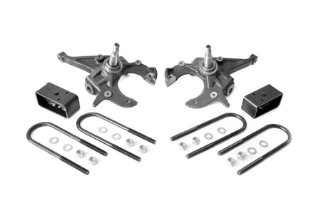 If you want to easily transform the look of your truck, look no further than Rough Country's 2in / 3in Lowering Kit for 82-04 Chevy S-10 pickups. Our easy-to-install Lowering Kit is a total transformation, offering a sleek, modern look that keeps heads turning! A set of sturdy Driver and Passenger Lowering Spindles offer plenty of strength and durability while helping maintain a factory-like ride. Also included are a set of Fabricated rear blocks, offering superior strength and reliability over cast blocks. All together, this kit drops the ride height of your S-10, S-15, Blazer or Jimmy by 2in in the front and 3in in the rear, offering a sleek, level drop while keeping other crucial components in line. Best of all, This easy-to-install lowering kit features a simple, 100% bolt-on installation process.