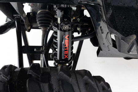 Outstanding Ride Quality.?ǻThe Vertex Coilover Shocks for Honda Pioneer provides the ultimate in off-road performance. With 16-stage adjustable damping, these shocks can be easily dialed in to give the perfect amount of support and stability. The adjustable coilover design provides 0-2 inches of lift, making it easy to get the right amount of clearance for your specific needs. Plus, the 3-stage seal system keeps out dirt and debris while the rubber bump stop ensures improved stability. So whether you're hitting the trails or blazing your own path, the Vertex Coilover Shocks for Honda Pioneer will give you the performance you need.\ Built to Withstand. These shocks are made to provide ultimate performance and comfort, with a monotube design that's nitrogen-charged for optimal damping sensitivity. The 16mm chrome-hardened piston rod and 52mm honed steel body are tough to handle anything you throw at them, while the zinc plate finish with a double clear coat protects against corrosion. And for easy height adjustment, we've included a spanner wrench.\ Installation and Warranty. Get your Honda Pioneer ready for the toughest terrain with Rough Country's high-quality Vertex Coilover Shocks. This suspension upgrade comes with everything you need for a quick and easy installation and can be installed in as little as 2-3 hours. Rough Country's Vertex Shocks are backed with a limited lifetime replacement warranty towards manufacturer defects. As such, the product is protected from structural and workmanship damage after the date of purchase. With our industry-leading warranty, give yourself peace of mind when using Rough Country's products!