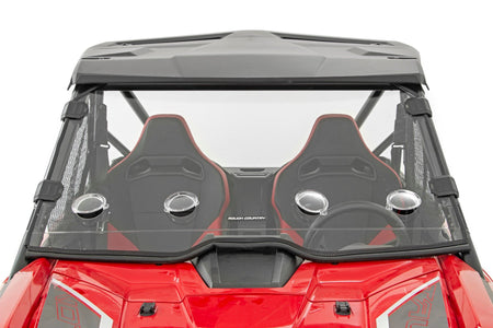 Added Protection and comfortability. Protect the occupants of your Honda Talon from off-road hazards such as rocks, branches, and other debris with Rough Country's Scratch-Resistant Windshields. UTV Windshields offer a clear visual of the trail ahead and allow for a much more comfortable outing!\ High-Quality Polycarbonate Construction. Rough Country UTV windshields are constructed from thick polycarbonate material that is precision cut for a perfect fit. The polycarbonate material provides an ideal combination of clarity, flexibility, durability that outperforms glass, acrylic, and other windshield materials.\ Durable Scratch and UV Resistance. Each windshield is not only constructed from thick polycarbonate material but enhanced by a secondary AR2 hard-coating process. This process completely coats the windshield with a hardened, scratch-resistant barrier. This treatment also provides the additional benefit of UV protection.\ Easy Installation. With a simple strap-on installation process, installing a Rough Country windshield couldn't be easier. Within 15 ?Çô 30 mins you can be ready to hit the trails.\ Limited-Lifetime Replacement Warranty. Rough Country's Scratch-Resistant Windshields are backed with a limited lifetime replacement warranty towards manufacturer defects. As such, the product is protected from structural and workmanship damage after the date of purchase. With our industry-leading warranty give yourself peace of mind when using Rough Country's Suspension products!