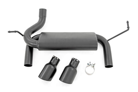 Overhaul the look and sound of your JK?ÇÖs exhaust with Rough Country?ÇÖs Dual-Outlet Performance Exhaust System. This durable exhaust system offers a throaty growl and menacing appearance that fits in perfectly with the aggressive look of a modified Jeep.Each exhaust system features a 409 stainless body with high temperature resistant coating for a long lifespan of good looks. This high-quality exhaust modification features 21/2-inch mandrel-bent tubing that?ÇÖs designed for a high-flow, guttural sound that every driver will enjoy. A set of dual-wall exhaust tips with embossed ?ǣRC?ǥ logo add a finishing touch to this great-looking upgrade, constructed from corrosion resistant 304 stainless material.Rough Country?ÇÖs Dual-Outlet Performance Exhaust System is easy to install with no cutting or welding required!