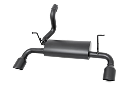 Overhaul the look and sound of your JL?ÇÖs exhaust with Rough Country?ÇÖs Dual-Outlet Performance Exhaust System. With an eye-catching matte black finish, these durable exhaust systems offer a throaty growl and menacing appearance that fits in perfectly with the aggressive look of a modified Jeep.\ Each exhaust system features a 409 stainless steel body with high temperature resistant coating for a long lifespan of good looks. This high-quality exhaust modification features 21/2-inch mandrel-bent tubing that?ÇÖs designed for a high-flow, guttural sound that every driver will enjoy. A set of 304 stainless dual-wall, black exhaust tips with embossed ?ǣRC?ǥ logo add a finishing touch to this great-looking upgrade.\ Rough Country?ÇÖs Dual-Outlet Performance Exhaust System is easy to install with no cutting or welding required!\ ?á