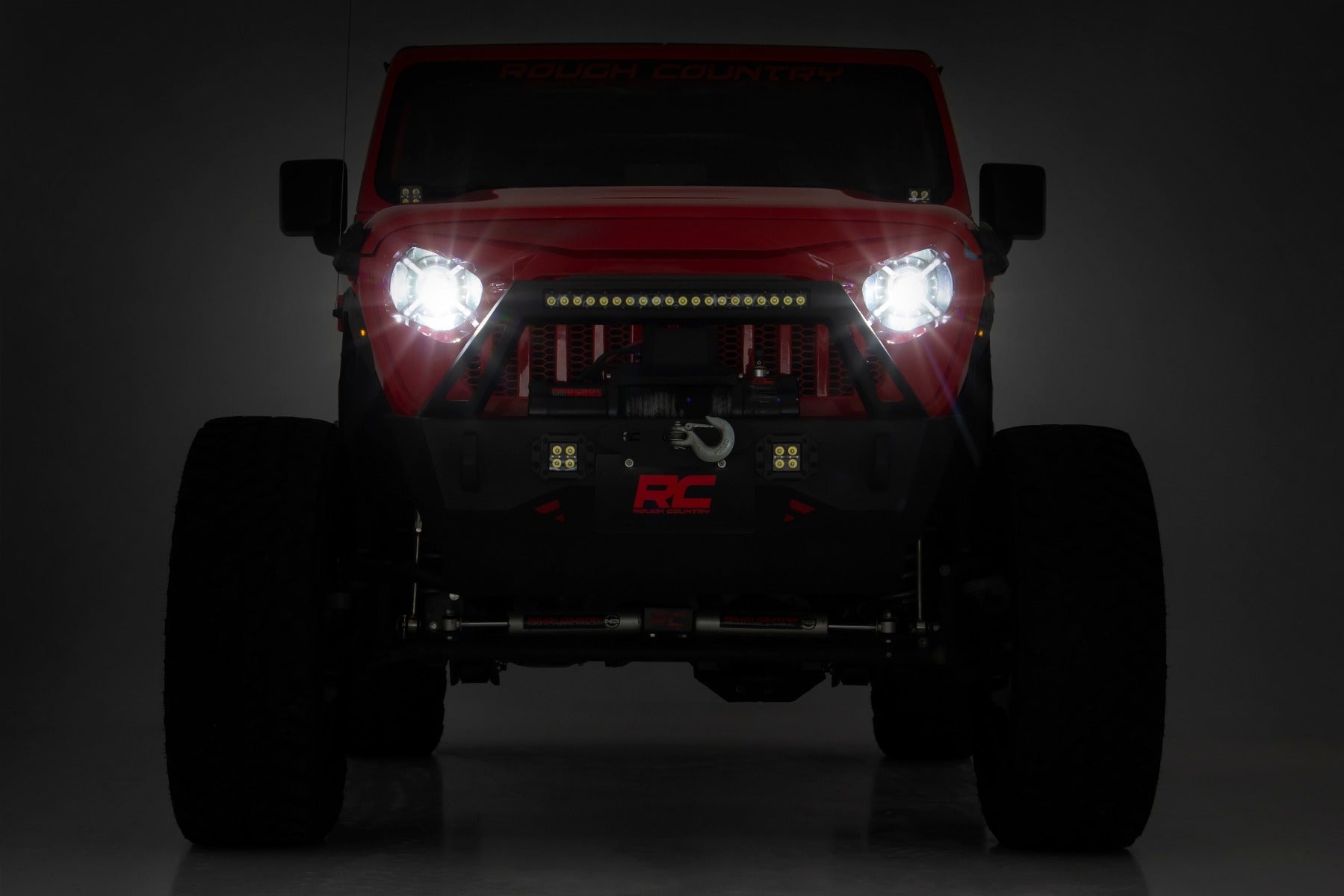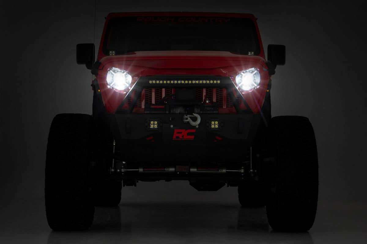 See more of the road ahead while giving your Jeep an aggressive look with Rough Country?ÇÖs DOT-certified 9in LED Projection Headlights. These easy-to-install headlights offer incredible illumination while transforming the look of your front-end.\ Rough Country?ÇÖs LED Projection Headlights are DOT/SAE certified to be street legal, and feature a durable IP67 waterproof housing for a long lifespan of illumination. Each headlight kit features a 100% bolt-on installation process and includes a handy adapter for easy plug-and-play setup.\ With 100 watt / 6500 lumen high beams and 30 watt / 3000 lumen low beams, Rough Country?ÇÖs 9-Inch LED Projection Headlights offer plenty of illumination. The black interior design and ?ǣX?ǥ design lamp housing gives the headlight an interesting look that dresses up your front-end design.
