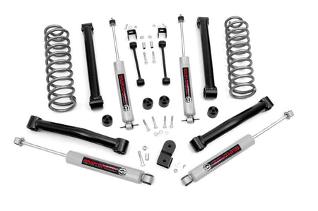 Who says your daily driver and your weekend warrior can't be the same vehicle? The 3.5-inch N3-Series Kit for Jeep ZJ was engineered by Rough Country's Research and Development Team to give the perfect blend of off-road performance and smooth highway ride. A set of application tuned, lifted coil springs are included in this kit along with a set of tubular lower control arms outfitted with rubber durable rubber bushings for the best in vibration dampening. The 3.5-inch N3-Series kit also includes a track bar bracket and a set of extended sway bar links. Improve your on and off-road ride quality with Rough Country's premium N3 shocks! These 10-stage variable valving, high-pressure Nitrogen charged shocks offer a fantastic blend of off-road action and smooth highway ride quality. With a durable 18mm spring-loaded piston rod and faster-cooling 54mm shock body, this shock offers up to 36kN Tensile Strength for a long lifespan of impressive vibration dampening. Features natural rubber bushings and an eye-catching metallic silver paint.