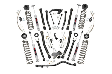 Give your Jeep a total transformation with Rough Country?ÇÖs 6in X-Series Suspension Lift. This all-inclusive kit comes with everything you need to give your vehicle aggressive good looks and improved off-road performance! This kit features a set of front and rear upper and lower adjustable control arms with a high-clearance design, allowing you to dial in the exact ride you desire! Each kit also comes with lifted coil springs and coil correction plates, providing lift height and impeccable vibration dampening on any terrain. For those who are serious about flexing, crawling, and pushing your Jeep to the limits, this kit features an upgraded Forged Adjustable Track Bar. Made of forged steel, this 16lb Track Bar boast a beefy construction that will dwarf stock equipment. Easy to install and fully adjustable on the vehicle. Best of all, this kit features Rough Country's premium N3 shocks! These 10-stage variable valving, high-pressure Nitrogen charged shocks offer a fantastic blend of off-road action and smooth highway ride quality. With a durable 18mm spring-loaded piston rod and faster-cooling 54mm shock body, this shock offers up to 36kN Tensile Strength for a long lifespan of impressive vibration dampening. Features natural rubber bushings and an eye-catching metallic silver paint.