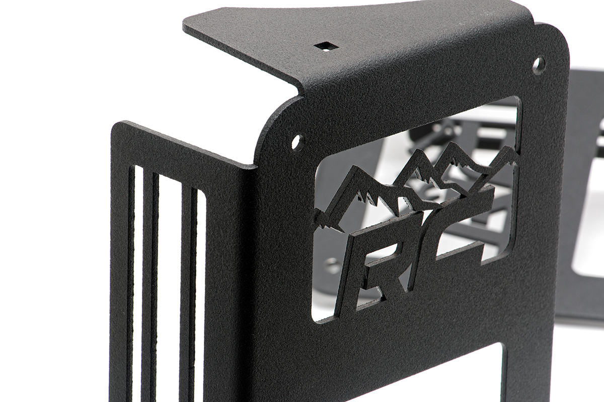 - Laser-cut mountain design Easy bolt-on installation Durable black powdercoat Includes standard-sized mounting points for small LED lights Lifetime Replacement Warranty Sold in pairs