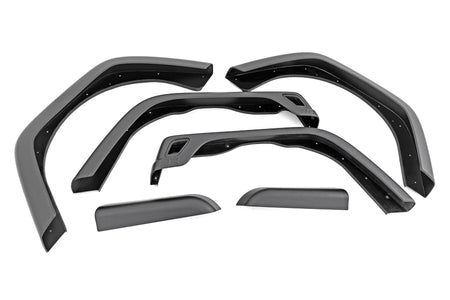 Innovative Design and Added Protection. Increase your Wrangler's protective features while adding impressive good looks with Rough Country's 5.5" Wide Fender Flares. These aggressively good-looking flares transform your TJ's exterior boasting a wide coverage area ensuring to protect your Jeep's body from mud or road debris kicked up by the tires.\ Lightweight and Durable. Designed to handle on or off-road terrain Rough Country's fender flares are constructed of a Rigid UV Stable Black TPO plastic. This material is lightweight and can endure the elements. The UV treatment process eliminates chalking and helps prevent sun fading. Each flare set features a stock look and feel and retains the factory front marker lights.\ Installation.?áWith no cutting or drilling required to install, installation couldn't be easier. With an estimated timeframe of 1-2 hours this full kit can be installed at home using standard tools and can be completed efficiently and quickly!\ Limited Lifetime Replacement Warranty. Rough Country's 5.5" Wide Fender Flares is backed with a limited lifetime replacement warranty towards manufacturer defects. As such, the product is protected from structural and workmanship damage after the date of purchase. With our industry-leading warranty give yourself peace of mind when using Rough Country products!