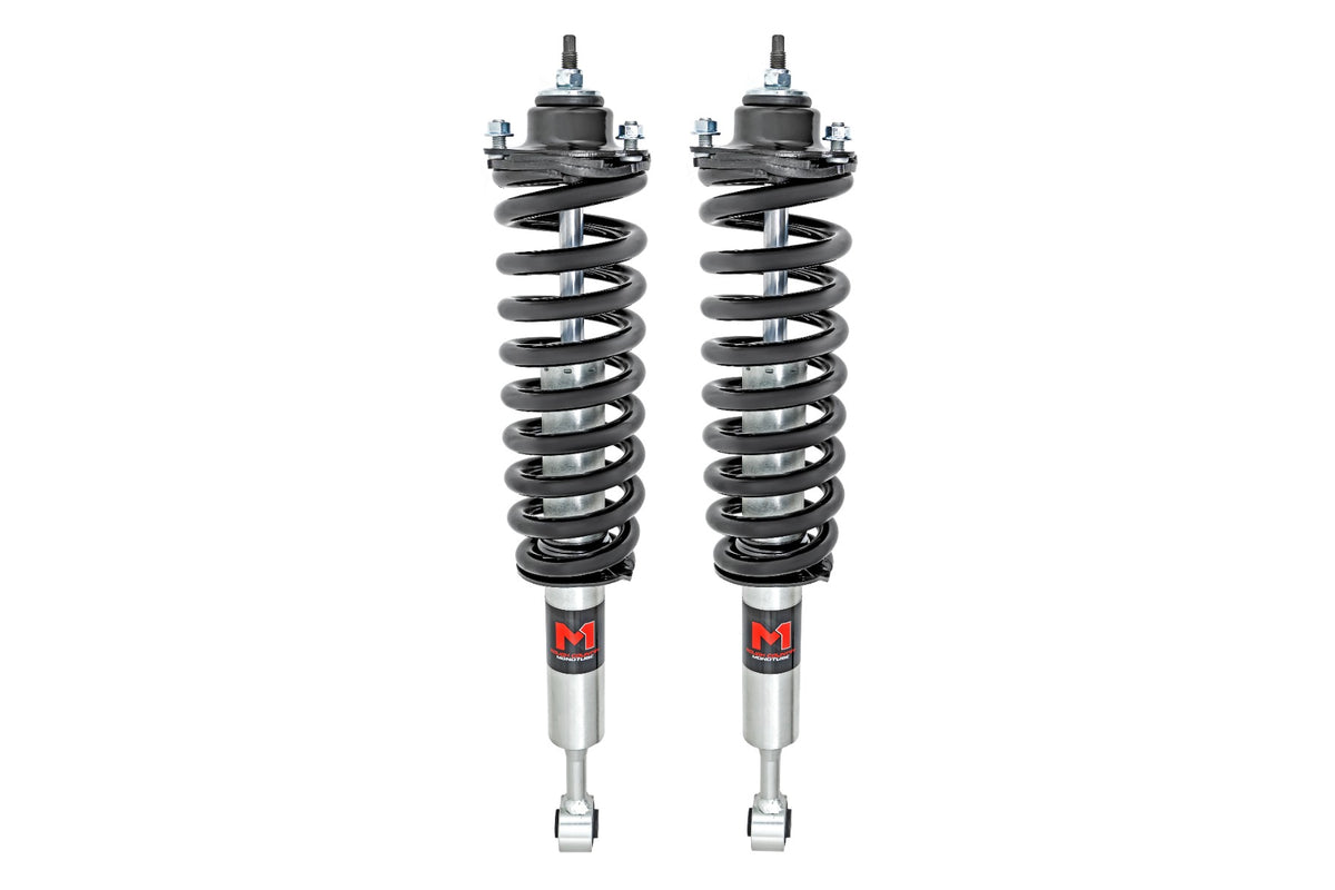 Improved Stance, Balance, and Handling.?ǻIf you want to improve your vehicle's on-road performance and off-road capabilities, Rough Country's M1 Loaded Strut Kits are the way to go. Our M1 Loaded Struts help stabilize your vehicle's movements, enhancing control when you turn, brake, accelerate or ride over uneven road surfaces. As an adjustable ride height strut, these M1?ÇÖs keep your suspension from overextending, providing a more consistent ride. Made for rugged off-road performance, our M1 monotube struts have a 46mm digressive piston for a more stable ride, preserving the smooth ride quality you need.\ Quality Construction.?ǻRough Country's M1 Loaded Struts have been engineered to give you the most reliable performance, increased driving comfort, and all-around performance for your vehicle. Made from 2" seamless extruded tubing and feature durable vulcanized natural rubber bushings. They're also zinc plated for resistance against the elements. Plus, they're adjustable in height. Utilizing multiple grooves in the strut body the spring perch can be raised or lowered. So whether you're looking to add a little extra clearance for off-roading or just want your ride to sit a little higher, our M1 Monotube Loaded Struts are the perfect solution.\ Installation and Warranty. This bolt-on installation requires just basic tools and about 2-3 hours to complete. Our Strut Kit is backed with a limited lifetime replacement warranty towards manufacturer defects. As such, the product is protected from structural and workmanship damage after the date of purchase. With our industry-leading warranty, give yourself peace of mind when using Rough Country's products!