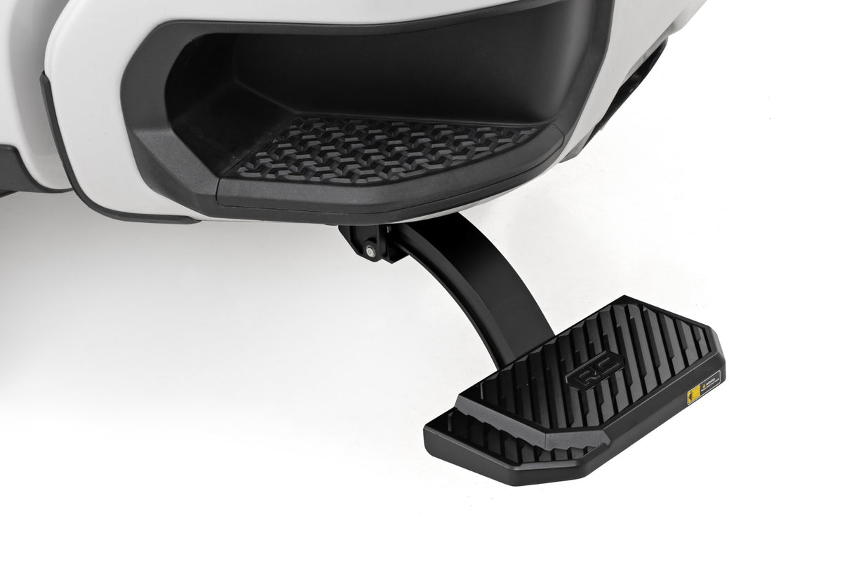 Tired of climbing up like you're scaling a wall just to reach your gear? The Rough Country Manual Bed Step is your answer for quick and easy access. With a simple tap of your foot, this step drops 5", giving you that extra boost to reach what you need without breaking a sweat. Whether you're tossing in tools or loading up camping gear, the Rough Country Bed Step has your back (and your knees).5-Inch Drop: Say goodbye to awkward stretches and hops; this step gives you a 5-inch drop, so reaching into your truck bed feels like second nature.Foot-Push Deployment: No need to fumble around with handles or levers. Just give it a gentle nudge with your foot, and the step is ready to roll, supporting up to 330 lbs!Wide and Secure: With a 6" wide, non-slip surface, the die-cast aluminum board keeps your footing solid?Çöeven when your boots are muddy or it's pouring rain.Durable Die-Cast Aluminum: Built tough with lightweight yet super-strong die-cast aluminum, this step will withstand the roughest terrain and hardest working days.Easy Bolt-On Installation: No need to bust out the big tools or fumble with complicated installations. This step bolts right on for a quick and easy setup.Give your truck the upgrade it deserves with the Rough Country Manual Bed Step. Invest in a step that's built to last, and make accessing your truck bed easier than ever.