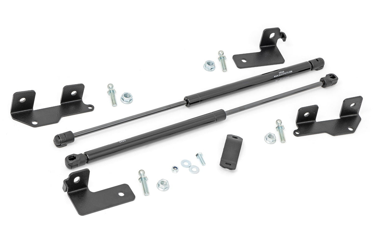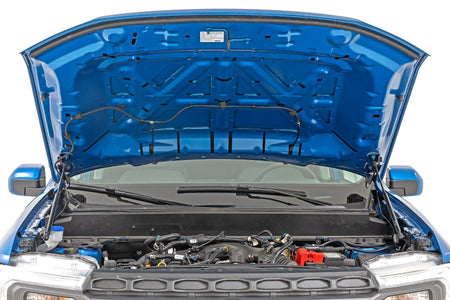 Must-Have Hood Upgrade. Easily and effortlessly access your engine components with this handy device. Rough Country's Hydraulic Hood Assist for Ford Maverick features a set of gas-charged struts that help automatically raise the hood, increasing safety by avoiding the need to mess with the prop rod or rest the hood on the front windshield. This innovative kit features mounting brackets that rest firmly in the center of the hood, helping to facilitate the opening and closing process while giving a killer look to an otherwise barren area.\ Installation.?áFeaturing a 100% bolt-on installation, installing this Hood Assist couldn't be easier. With an estimated timeframe of 30 minutes this full kit can be installed at home using standard tools and can be completed efficiently and quickly!\ Limited Lifetime Replacement Warranty. Rough Country's Hydraulic Hood Assist is backed with a limited lifetime replacement warranty towards manufacturer defects. As such, the product is protected from structural and workmanship damage after the date of purchase. With our industry-leading warranty give yourself peace of mind when using Rough Country's Suspension products!