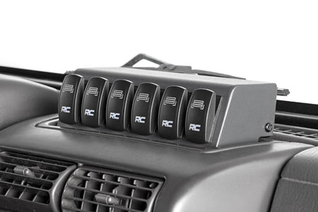 Take command of your electronic devices with Rough Country?ÇÖs MLC-6 Multiple Light Controller for the Jeep Wrangler TJ. This easy and reliable electrical upgrade allows you to control six auxiliary LED lights or electrical devices with the push of a button. Each kit features a power distribution block, 6-row switch hub, mounting hardware, and high-temperature, abrasion resistant wiring cables. Rough Country?ÇÖs MLC-6 is a professional quality power distribution system and switchboard for Jeep TJ models, allowing you to add professional control for your electronic devices in an easy-to-install system that doesn?ÇÖt gut your dashboard or force you to splice into factory wiring. This plug-and-play system uses an in-line fused relay allowing you to safely connect up to 6 devices to one of the 6 interior switches with no mess and no fuss. The MLC-6 Power Distribution Block features an integrated LVCO (Low-Voltage Cut-Off) Circuit that detects battery voltage and will cut-off each accessory when the battery falls below operating voltage, ensuring you always have enough power to turn over your engine. This distribution system also features a 12-position terminal block for hooking up accessories, six plug-in style 40-amp cube relays, and 6 ATO style 30-amp automotive fuses for superior power and protection. Includes a 1-year mechanical warranty and 1-year electrical warranty!