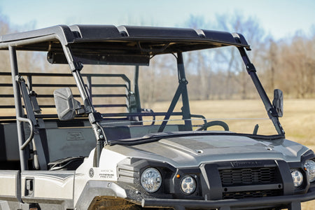 Added Protection and comfortability. Protect the occupants of your Mule Pro-FX from off-road hazards such as rocks, branches, and other debris with Rough Country's Scratch-Resistant Windshields. UTV Windshields offer a clear visual of the trail ahead and allow for a much more comfortable outing!\ High-Quality Polycarbonate Construction. Rough Country UTV windshields are constructed from thick polycarbonate material that is precision cut for a perfect fit. ?áThe polycarbonate material provides an ideal combination of clarity, flexibility, durability that outperforms glass, acrylic, and other windshield materials.?á\ Durable Scratch and UV Resistance. Each windshield is not only constructed from thick polycarbonate material but enhanced by a secondary AR2 hard-coating process.?á This process completely coats the windshield with a hardened, scratch-resistant barrier.?á This treatment also provides the additional benefit of UV protection.\ Easy Installation.?áWith a simple strap-on installation process, installing a Rough Country windshield couldn't be easier.?á Within 15 ?Çô 30 mins you can be ready to hit the trails. ?á\ Limited-Lifetime Replacement Warranty. Rough Country's Scratch-Resistant Windshields are backed with a limited lifetime replacement warranty towards manufacturer defects. As such, the product is protected from structural and workmanship damage after the date of purchase. With our industry-leading warranty give yourself peace of mind when using Rough Country's Suspension products!