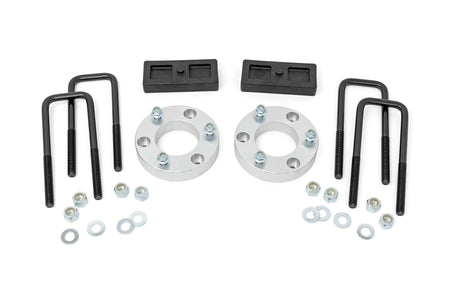 Increased Ground Clearance. Level your second-generation Titan from front to rear while giving your truck a more aggressive look with Rough Country?ÇÖs 2-inch Leveling Lift Kit for Nissan Titan trucks. Nissan's Titan comes with a factory rake, leaving the rear much higher than the front. This simple solution raises the front and rear, providing additional ride height while leveling the front with the rear for a more striking visual appeal and the ability to run larger tires and wheels.\ Innovative Design and Construction. This easy-to-install, innovative Aluminum Spacer combines great looks and strength, while providing 2 inches of lift. This spacer features aircraft quality, T6061 Billet Aluminum offering enhanced durability against elements like rain and rust Featuring a durable set of rear lift blocks and u-bolts this innovative kit allows the vehicle to retain factory-like geometry and provides enough clearance to run 33" tires with appropriate wheel backspacing.\ Installation. With a no-cut or drilling required to install, installation couldn't be easier. With an estimated timeframe of 3-4 hours, this full kit can be installed can be completed efficiently and quickly!\ Limited Lifetime Replacement Warranty. Rough Country's 2-inch Leveling Lift Kit is backed with a limited lifetime replacement warranty towards manufacturer defects. As such, the product is protected from structural and workmanship damage after the date of purchase. With our industry-leading warranty give yourself peace of mind when using Rough Country's Suspension products!