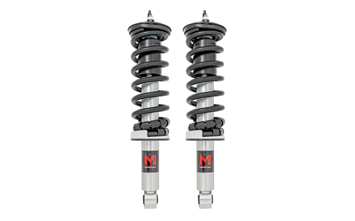 Improved Stance, Balance, and Handling.?ǻIf you want to improve your vehicle's on-road performance and off-road capabilities, Rough Country's M1 Loaded Strut Kits are the way to go. Our M1 Loaded Struts help stabilize your vehicle's movements, enhancing control when you turn, brake, accelerate or ride over uneven road surfaces. As an adjustable ride height strut, these M1?ÇÖs keep your suspension from overextending, providing a more consistent ride. Made for rugged off-road performance, our M1 monotube struts have a 46mm digressive piston for a more stable ride, preserving the smooth ride quality you need.\ Quality Construction.?ǻRough Country's M1 Loaded Struts have been engineered to give you the most reliable performance, increased driving comfort, and all-around performance for your vehicle. Made from 2" seamless extruded tubing and feature durable vulcanized natural rubber bushings. They're also zinc plated for resistance against the elements. Plus, they're adjustable in height. Utilizing multiple grooves in the strut body the spring perch can be raised or lowered. So whether you're looking to add a little extra clearance for off-roading or just want your ride to sit a little higher, our M1 Monotube Loaded Struts are the perfect solution.\ Installation and Warranty. This bolt-on installation requires just basic tools and about 2-3 hours to complete. Our Strut Kit is backed with a limited lifetime replacement warranty towards manufacturer defects. As such, the product is protected from structural and workmanship damage after the date of purchase. With our industry-leading warranty, give yourself peace of mind when using Rough Country's products!