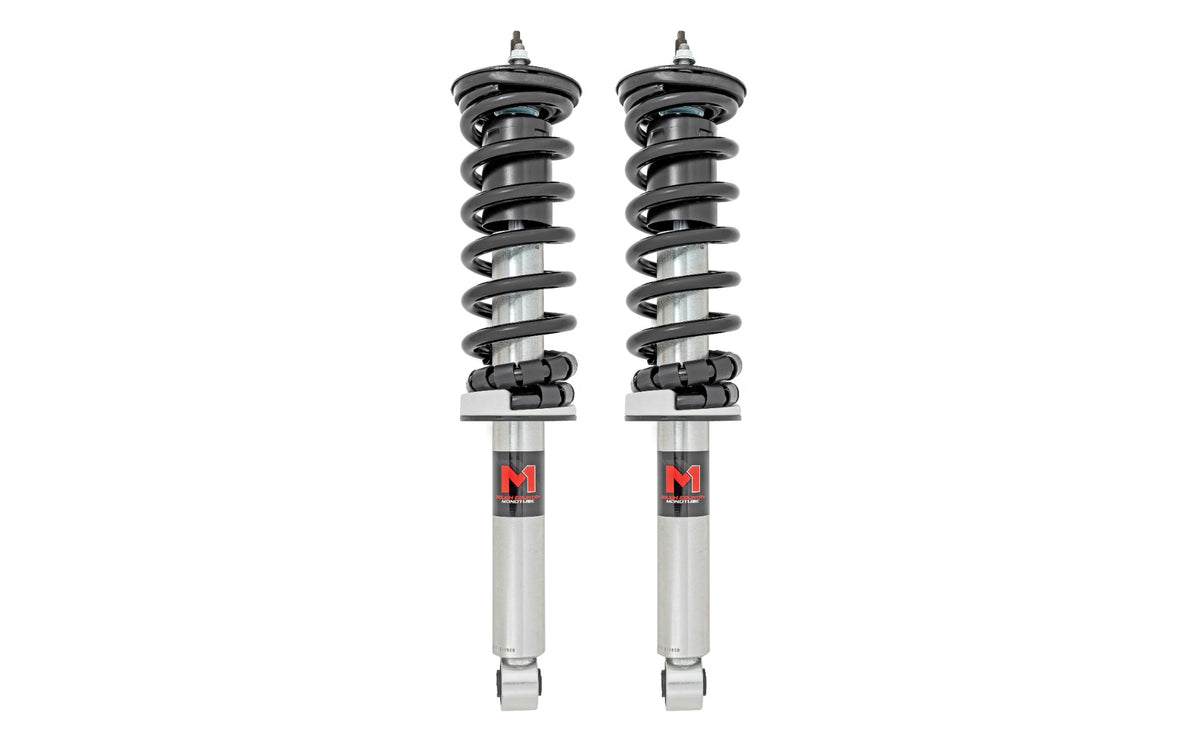 Improved Stance, Balance, and Handling.?ǻIf you want to improve your vehicle's on-road performance and off-road capabilities, Rough Country's M1 Loaded Strut Kits are the way to go. Our M1 Loaded Struts help stabilize your vehicle's movements, enhancing control when you turn, brake, accelerate or ride over uneven road surfaces. As an adjustable ride height strut, these M1?ÇÖs keep your suspension from overextending, providing a more consistent ride. Made for rugged off-road performance, our M1 monotube struts have a 46mm digressive piston for a more stable ride, preserving the smooth ride quality you need.\ Quality Construction.?ǻRough Country's M1 Loaded Struts have been engineered to give you the most reliable performance, increased driving comfort, and all-around performance for your vehicle. Made from 2" seamless extruded tubing and feature durable vulcanized natural rubber bushings. They're also zinc plated for resistance against the elements. Plus, they're adjustable in height. Utilizing multiple grooves in the strut body the spring perch can be raised or lowered. So whether you're looking to add a little extra clearance for off-roading or just want your ride to sit a little higher, our M1 Monotube Loaded Struts are the perfect solution.\ Installation and Warranty. This bolt-on installation requires just basic tools and about 2-3 hours to complete. Our Strut Kit is backed with a limited lifetime replacement warranty towards manufacturer defects. As such, the product is protected from structural and workmanship damage after the date of purchase. With our industry-leading warranty, give yourself peace of mind when using Rough Country's products!
