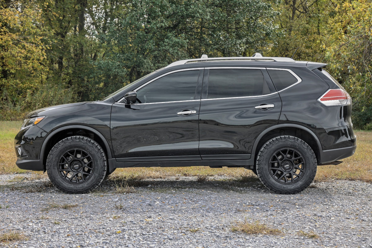 Give your Rogue an improved, aggressive look with Rough Country?ÇÖs 1.5in Leveling kit! This kit levels your vehicle from front to rear allowing you to run larger tires while eliminating the nose-down factory look for a commanding presence that can?ÇÖt be ignored.\ When it comes to leveling your Rogue, a small lift can make a huge difference! By leveling the vehicle from front to rear, you get an instant, aggressive look that?ÇÖs sure to turn heads wherever you go. The increased ground clearance allows you to run larger tires and wheels for a customized look that gives your vehicle a one-of-a-kind look and feel.Each kit features a set of front struts, rear springs, and rear N3 shocks for the ideal lift solution. Rough Country?ÇÖs 1.5in Leveling Kit features an easy bolt-on installation process. Includes a Lifetime Replacement Guarantee!