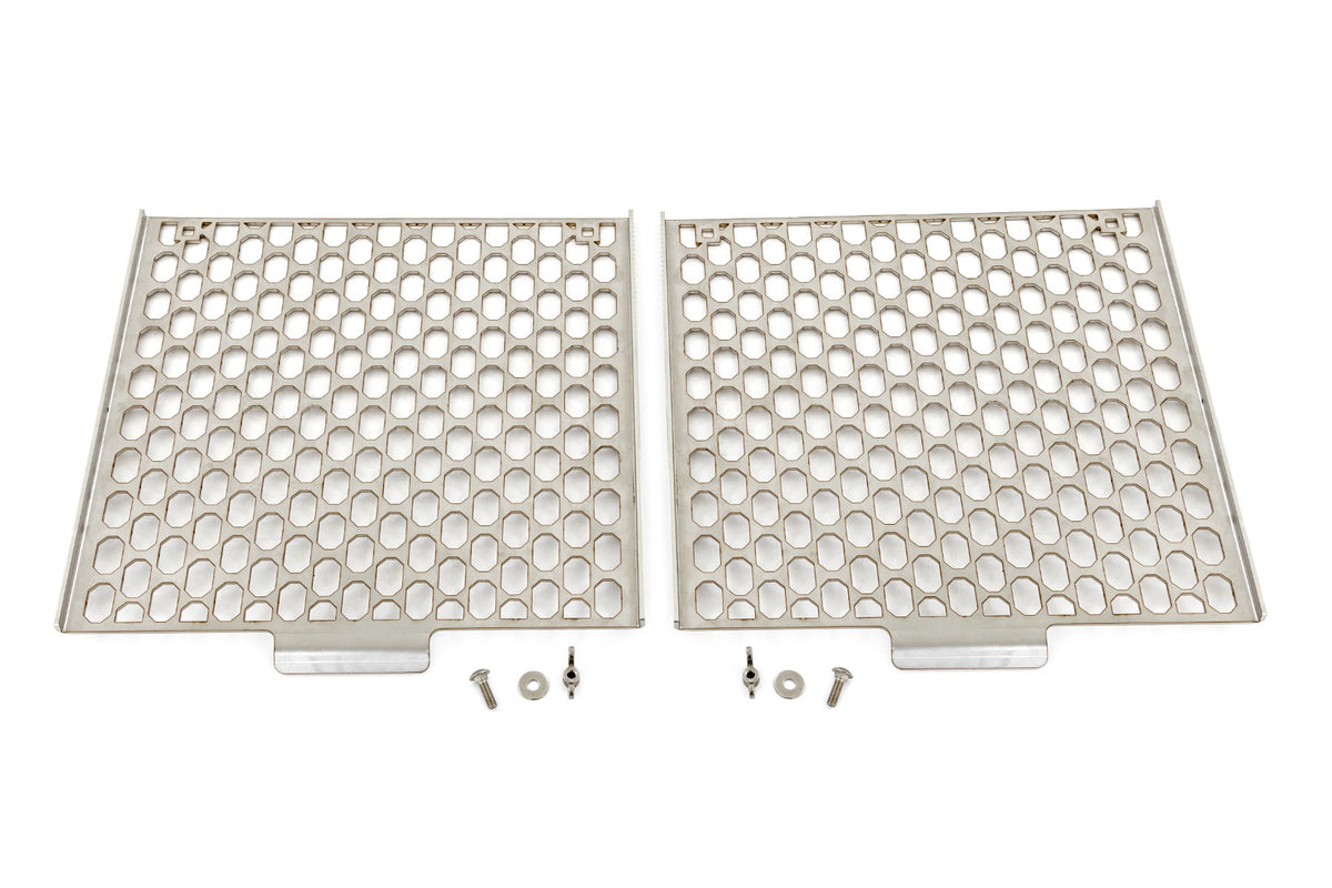 On the go grilling.?ǻPack up and take the party on the road with Rough Country's Overland Fire Pit Grill Grate. This rugged, stainless steel grate is designed specifically to fit Rough Country's Overland Collapsible Fire Pit (sold separately). So, whether you're roasting marshmallows at a campsite or grilling burgers at a picnic, our portable campfire grill grate is the perfect way to mix up your outdoor mealtimes.\ Lightweight and long-lasting.?ǻOverland Fire Pit Grill Grate is made of 11 gauge (304) Stainless steel and is easy to clean - perfect for cooking up some of your favorite recipes. This easy-to-use two-piece design is lightweight yet rugged enough to survive life on the trail. With raised edges that prevent food from rolling off the grill, you'll be able to cook up a feast fit for a king. So, throw some food over your firepit and show off your grilling skills!\ Assembly. Rough Country's stainless-steel fire pit grill grate is perfect for camping trips, picnics, or even in the backyard. Plus, it includes all hardware for quick assembly/disassembly, so you can set it up and take it down in no time.\ Warranty. The Overland Collapsible Fire Pit Grill Grate comes with our industry-leading limited lifetime warranty.