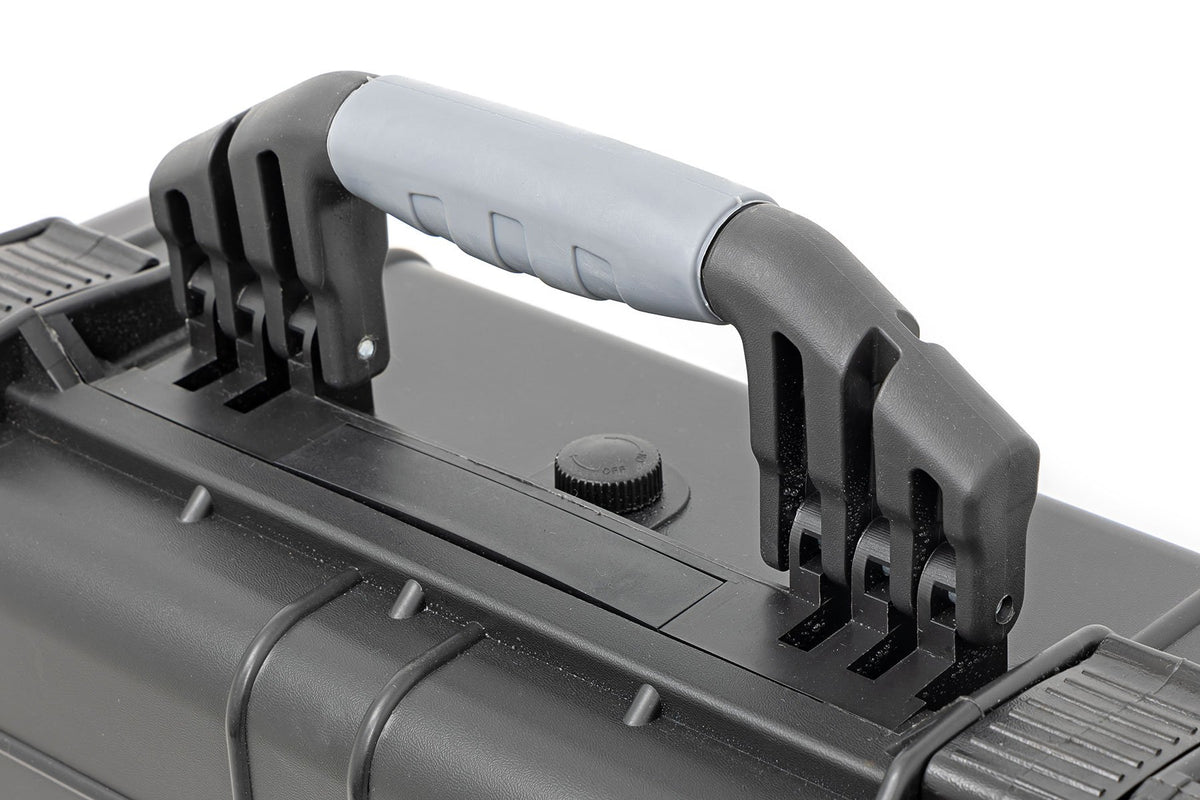When it comes to overlanding and outdoor adventures, keeping your gear protected and secure is paramount. Rough Country understands the challenges you face, from rugged terrain to unpredictable weather. That's why we've designed the Rough Country Overland Case to be your ultimate gear storage solution. Say goodbye to worrying about the safety of your equipment and focus on your next adventure.\ Made from Waterproof, Impact-Resistant Polymer: Crafted from high-quality waterproof, impact-resistant polymer, our Overland Case is built to withstand the harshest conditions. Whether you're navigating through a rainstorm or traversing rough terrain, your gear remains safe and dry inside this rugged case.\ Dust and Waterproof Seal: Our Overland Case features a reliable dust and waterproof seal, ensuring that your equipment stays protected from moisture, dust, and debris. Your valuable gear will stay in pristine condition no matter where your adventures take you.\ Integrated On/Off Release Valve: Our case includes an integrated on/off release valve to accommodate changes in air pressure and altitude. This feature allows for easy opening and closing, even in challenging conditions, making it a breeze to access your gear when you need it.\ Two Locking Points: Security is a top priority on or off the road. The Rough Country Overland Case comes with two locking points for added peace of mind. Keep your equipment safe from unauthorized access and potential theft, so you can explore with confidence.\ Heavy-Duty Latches: Designed for durability, our case is equipped with heavy-duty latches that ensure a secure closure every time. No need to worry about accidental openings or compromised protection.\ Multi-Purpose: The Rough Country Overland Case has endless possibilities. It's perfect for storing power tools, recovery gear, accessories, and more. Keep your gear organized and easily accessible, so you're always prepared for your next adventure.\ Rough Country's commitment to quality and innovation shines through in our Overland Case. Whether you're a seasoned Overlander or a weekend warrior, you can trust that your gear will be protected from the elements and securely stored. Invest in the Rough Country Overland Case today and elevate your outdoor experiences. Its rugged construction makes it the ultimate choice for adventurers who demand nothing but the best!