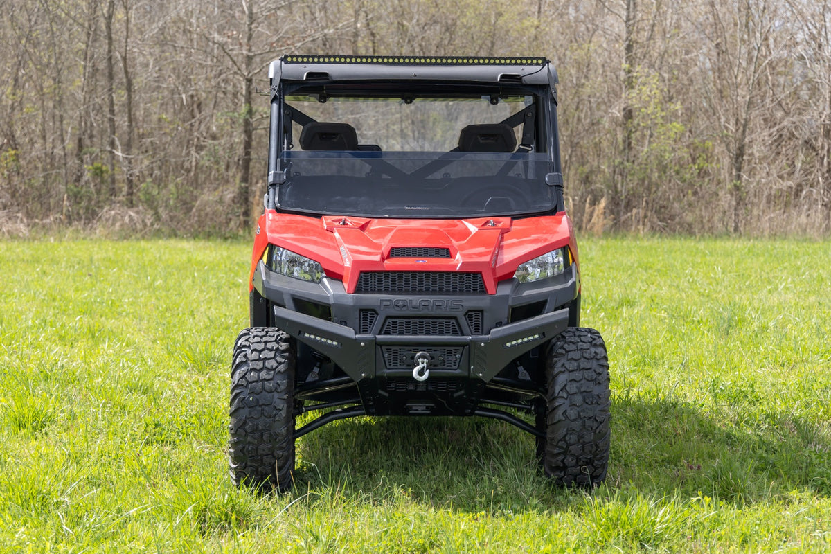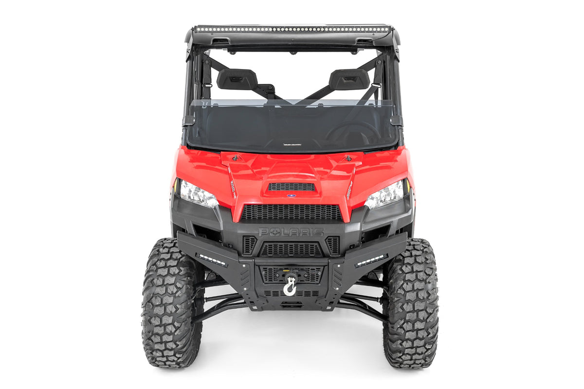 Stylish Upgrade. When it comes to customizing your Can Am Defender, you don?ÇÖt want to mess around. That's why Rough Country offers a new Tinted Half Windshield ?Çô specifically designed for your Defender! This half windshield not only looks tough and stylish with its dark tint, but it also helps protect against debris and wind while still letting some air flow in the cab. Don't settle for a boring, basic windshield - upgrade to Rough Country's Tinted Half Windshield today!\ Advanced design and construction. Rough Country's Tinted Half Windshield is crafted from premium-grade and resilient polycarbonate material. It features a light transmission rate of 14-17% and a contoured design that helps it fit you Defender perfectly. The molded lip at the top of the windshield also helps to deflect most of the dust and wind over you and your passenger. So whether you're tearing up the trails or cruising down the highway, you can count on our Tinted Half Windshield to provide the ultimate in protection and style.\ Installation. In addition to its top-notch performance and style, our Tinted Half Windshield is also incredibly easy to install. Whether you have a factory roof or an aftermarket one, this windshield is designed to work seamlessly with both. The installation process is straightforward and can be completed quickly and easily, so you can spend more time enjoying the trails and less time tinkering with your ride.\ Limited-Lifetime Replacement Warranty.?ǻRough Country's Scratch-Resistant Windshields are backed with a limited lifetime replacement warranty towards manufacturer defects. As such, the product is protected from structural and workmanship damage after the date of purchase. With our industry-leading warranty give yourself peace of mind when using Rough Country's products!