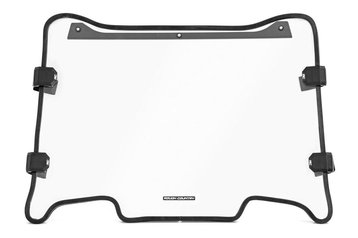 Added Protection and comfortability. Protect the occupants of your Polaris RZR from off-road hazards such as rocks, branches, and other debris with Rough Country's Scratch-Resistant Windshields. UTV Windshields offer a clear visual of the trail ahead and allow for a much more comfortable outing!\ High-Quality Polycarbonate Construction. Rough Country UTV windshields are constructed from thick polycarbonate material that is precision cut for a perfect fit. ?áThe polycarbonate material provides an ideal combination of clarity, flexibility, durability that outperforms glass, acrylic, and other windshield materials.?á\ Durable Scratch and UV Resistance. Each windshield is not only constructed from thick polycarbonate material but enhanced by a secondary AR2 hard-coating process.?á This process completely coats the windshield with a hardened, scratch-resistant barrier.?á This treatment also provides the additional benefit of UV protection.\ Easy Installation.?áWith a simple strap-on installation process, installing a Rough Country windshield couldn't be easier.?á Within 15 ?Çô 30 mins you can be ready to hit the trails. ?á\ Limited-Lifetime Replacement Warranty. Rough Country's Scratch-Resistant Windshields are backed with a limited lifetime replacement warranty towards manufacturer defects. As such, the product is protected from structural and workmanship damage after the date of purchase. With our industry-leading warranty give yourself peace of mind when using Rough Country's Suspension products!
