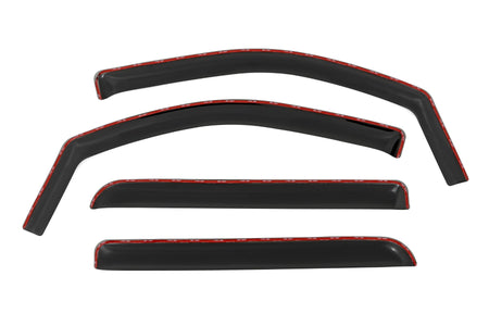Upgrade your driving comfort with Rough Country's premium in-channel wind deflectors, designed for easy installation and exceptional performance. They fit seamlessly into your vehicle's window channels maintaining a sleek profile while letting you enjoy fresh air in any weather. Say goodbye to noisy wind and turbulence for a quieter cabin on city commutes or road trips. Our deflectors reduce glare and keep your interior dry with windows cracked open. They blend seamlessly with your vehicle's design for a stylish look and are custom-made for a perfect fit and reliable performance, ensuring every drive is comfortable and enjoyable.