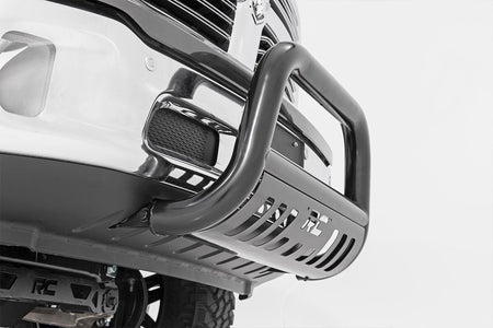 It's the ultimate combination of form and function with Rough Country's durable, new Bull Bars. Protect the front end of your truck with our beefy yet stylish Bull Bar kit. Featuring a 3-inch diameter tube design and corrosion-resistant finish, this Bull Bar package offers superior protection from hazards of the road and trail.Choose black or stainless and compliment the look of your vehicle with this eye-catching add-on. Features pre-drilled holes to easily add additional lighting. Rough Country's Bull Bars are easy to install, with a 100% bolt-on installation process that's easy enough to be done in a home garage with common tools. Each set of Rough Country Bull Bars is backed by Rough Country's 5-Year Warranty.