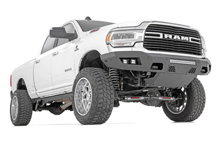 - Easy to install! Slim, Sleek design that follows factory features. Durable, steel construction. Integrated?áSkid?áPlate. Includes (4) Rough Country LED Cubes. Includes 20in Dual Row Rough Country LED Light Bar. Retains factory tow hooks. Retains factory proximity sensors.