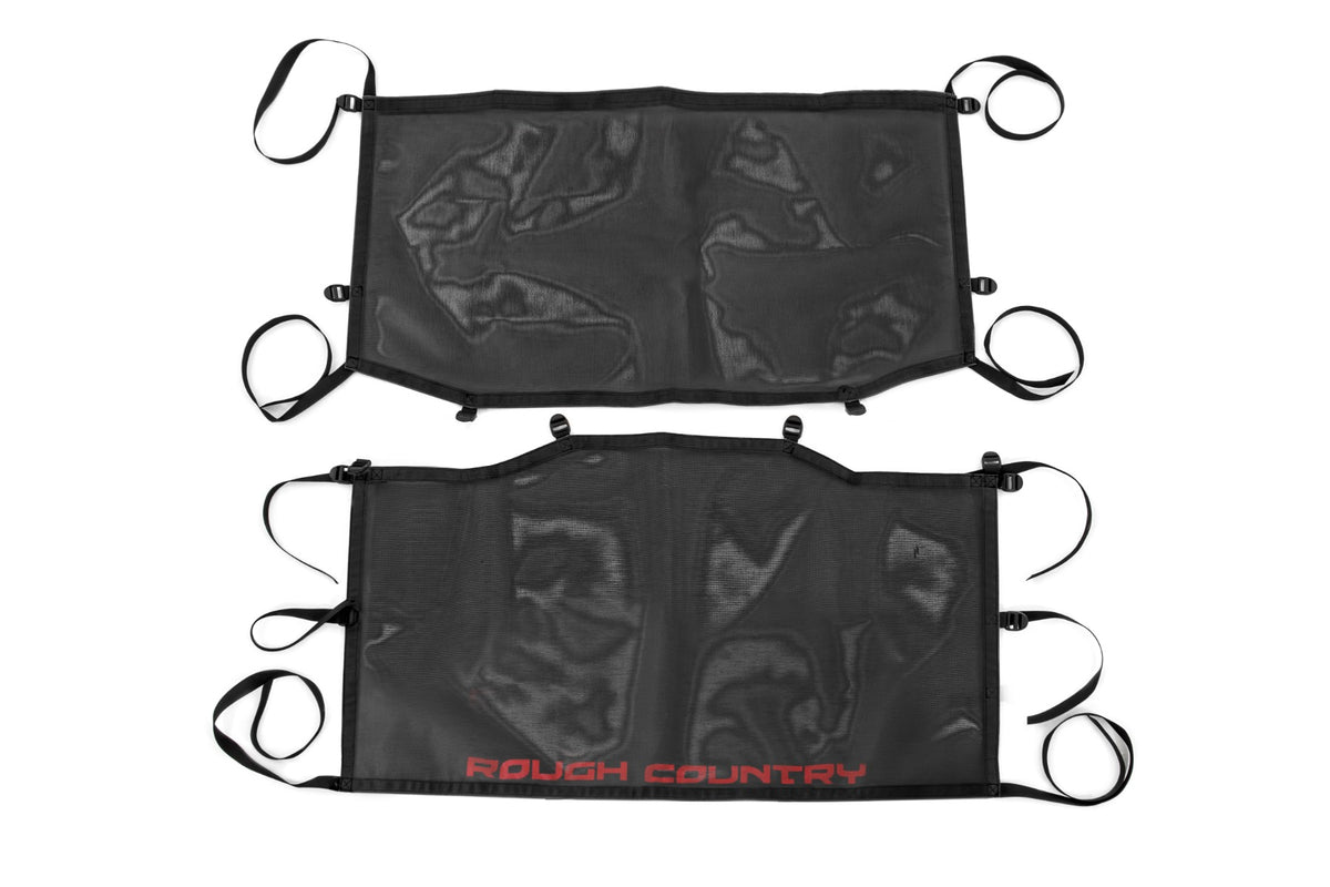 The best of both worlds! Get protection from the sun while still enjoying the breeze with Rough Country?ÇÖs Mesh Bikini Tops! These high-quality mesh tops block 70% of the sun?ÇÖs harmful UV rays, giving you much-needed shade and protection while still providing the classic top-down experience that so many owners enjoy!\ Installation. These easy-to-install Mesh Tops require no tools to install and can attach quickly and easily to your Gladiator?ÇÖs roll bars. Featuring a durable commercial-grade mesh fabric and heavy-duty webbing, these mesh Bimini tops are built to last for a long lifespan of good looks and protection.\ Warranty.?ǻRough Country's Mesh Bikini Top comes with a Limited Manufacturer's Warranty. As such, the product is protected from structural and workmanship damage after the date of purchase. With our industry-leading warranty, give yourself peace of mind when using Rough Country's products!