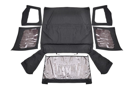 Whether you're restoring, updating, or trying to give your Jeep the look you've always wanted, Rough Country's new Soft Tops give you the absolute best bang for your buck. Featuring a 23 Ounce UV and Mildew resistant Vinyl Coated Polyester Cotton material, our tops are engineered to hold up to the harshest elements. For further durability, Rough Country's Soft Tops feature marine grade 135 gauge bonded polyester thread, double stitched with heat-tape sealed seams designed to take whatever you or Mother Earth can dish out. Our soft tops feature rear and quarter windows boasting a factory-like 31% tint, and incredibly strong 30mil thick, leak-proof windows. These DOT approved zip-on windows are easily removable to put the wind in your hair! Our lightning fast install process helps you get your Rough Country Soft Tops up and running in just minutes. Get a tight, wrinkle-free fit with our state-of-the-art Belt Rail and Hook & Loop attachments, designed to help you get a smooth, stable, snap-on fit with no additional modification necessary! Best of all, Rough Country Tops come with a 3 year warranty!?Çï